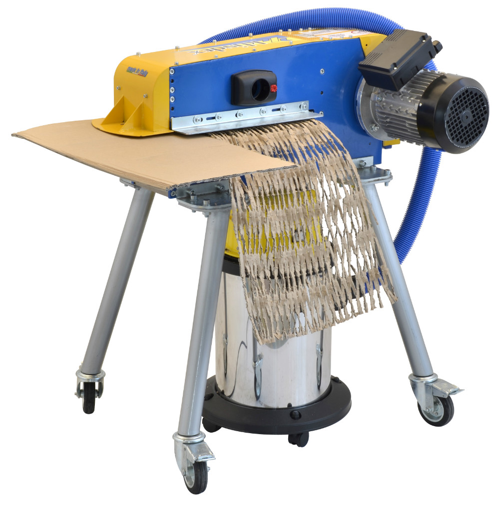 We are pleased to introduce the new range of cardboard shredder series EDWARD: A professional line of industrial, ecological, economic and compact shredders. Enough useless waste and improvised packaging! EDWARD frees space in the warehouse by transforming the cartons into cardboard elastic mesh perfect for packing.